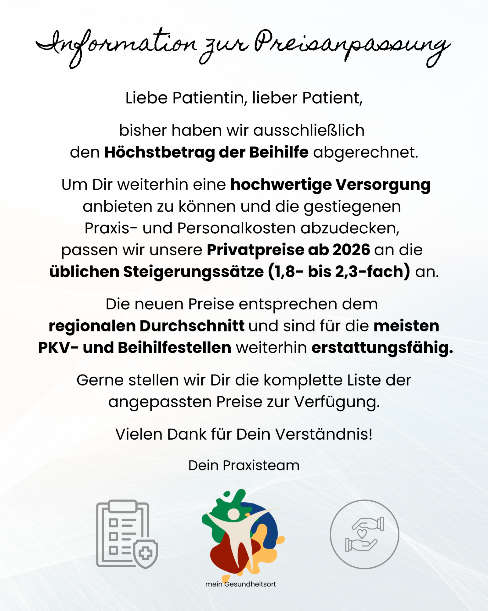 Der Praxisname „mein Gesundheitsort“ spiegelt das Gesamtkonzept der Praxis wider.